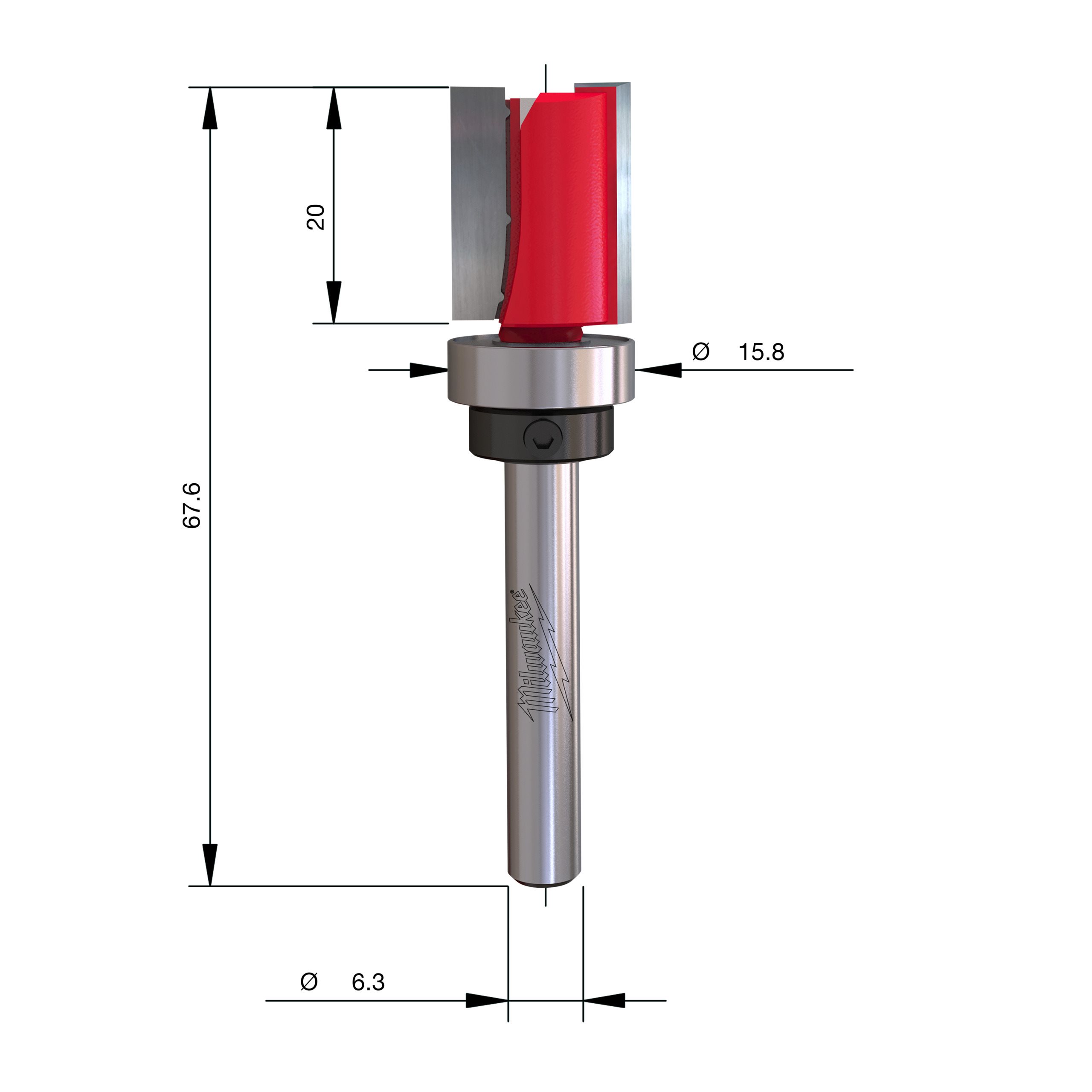 • Hardmetallfres med to skjær og toppmontert styrelager for presis selvstyring langs en mal, gir en nøyaktig kopi uten behov for styrehylse.